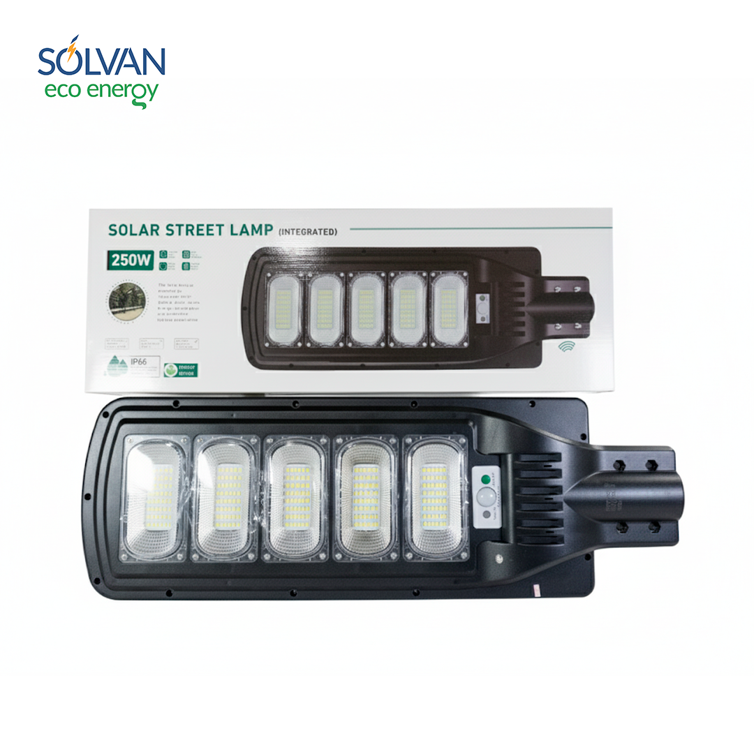 Iluminación pública autónoma con panel solar integrado, resistente y de alta potencia, ideal para calles, avenidas y espacios abiertos, brindando seguridad, eficiencia y durabilidad garantizada